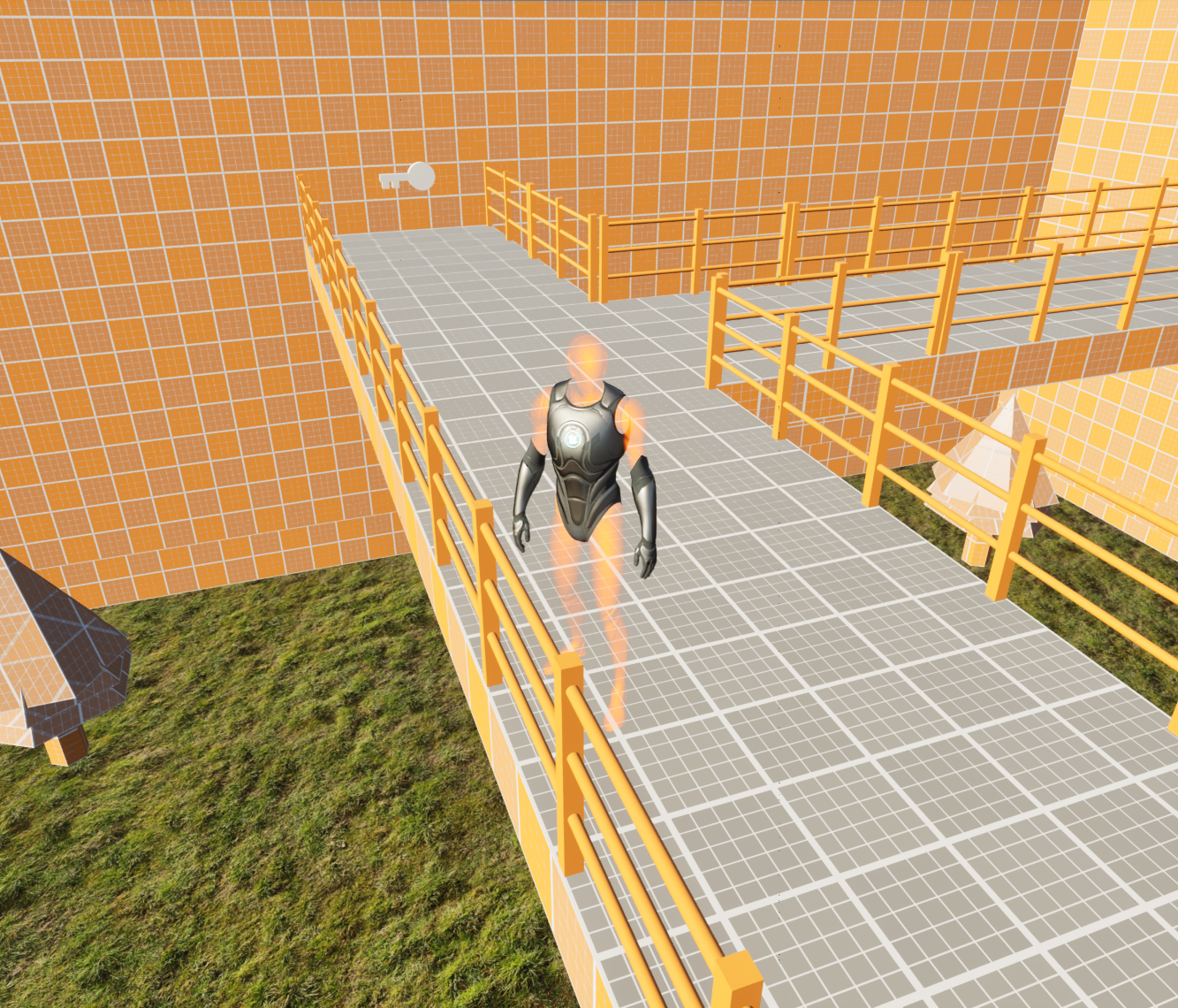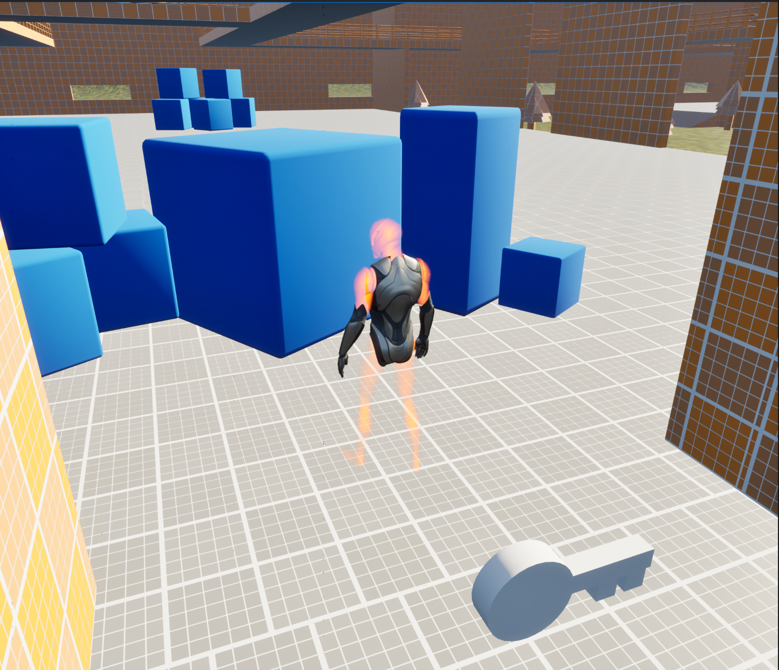 I added doors and keys so the player would need to collect them before progressing, requiring participation in stealth aspects or maneuvering through the level. I also did my best to get dash and crouch to work for the player character. Messing around with the animations and the like.